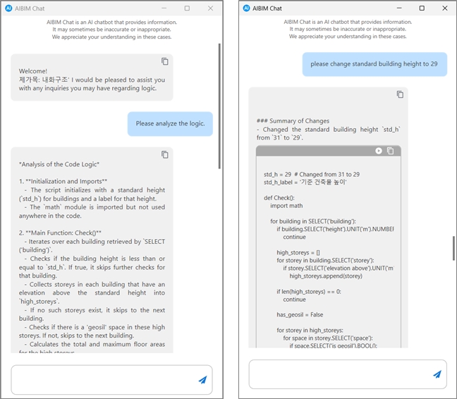 We developed an AI-based chatbot to interpret and modify design quality check logic using one of the latest large language model.