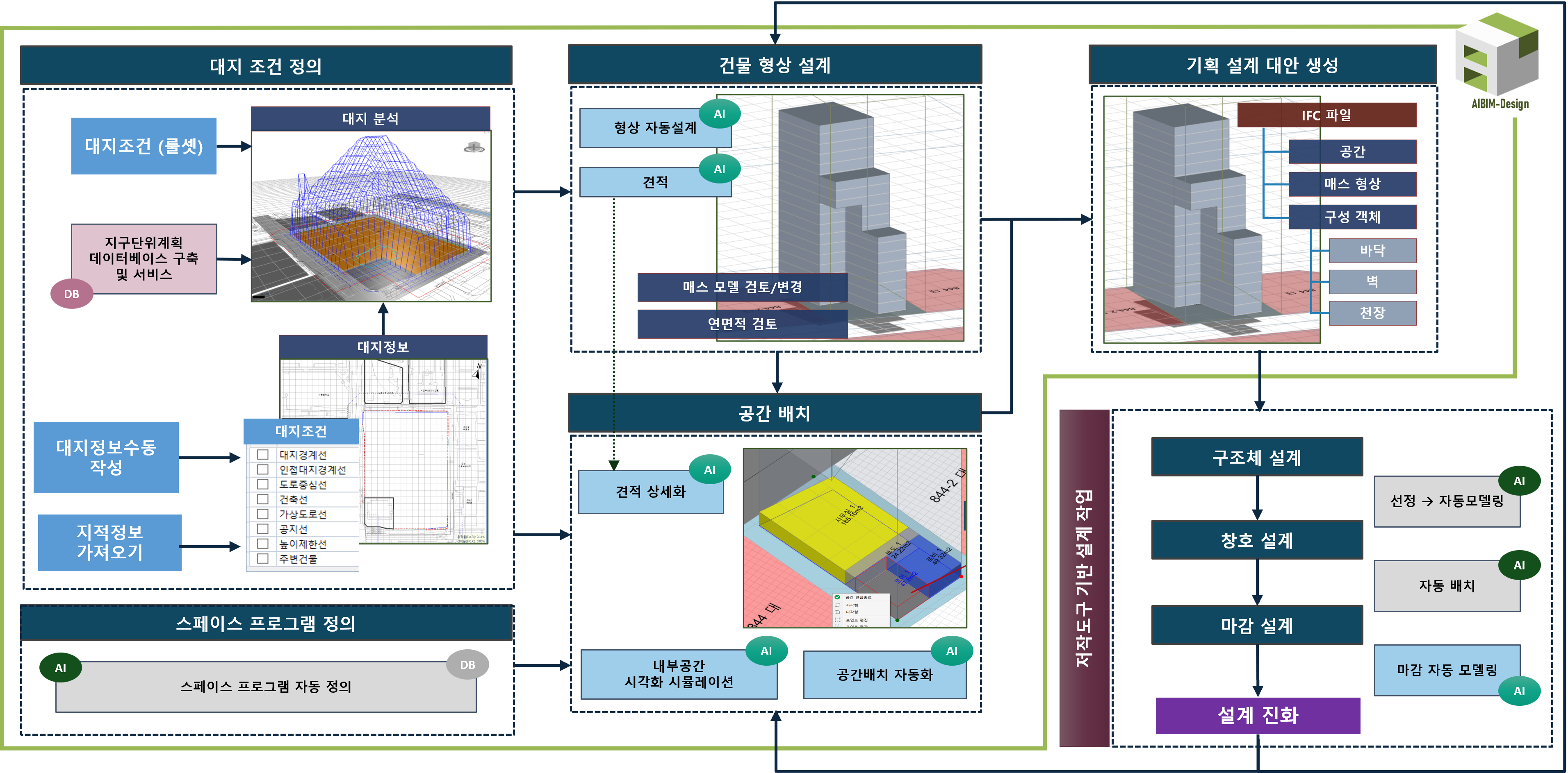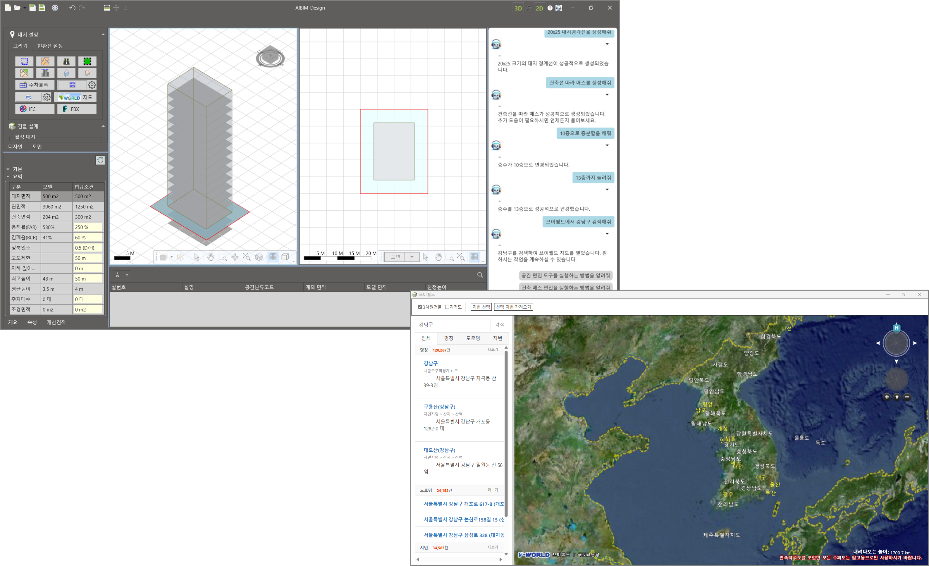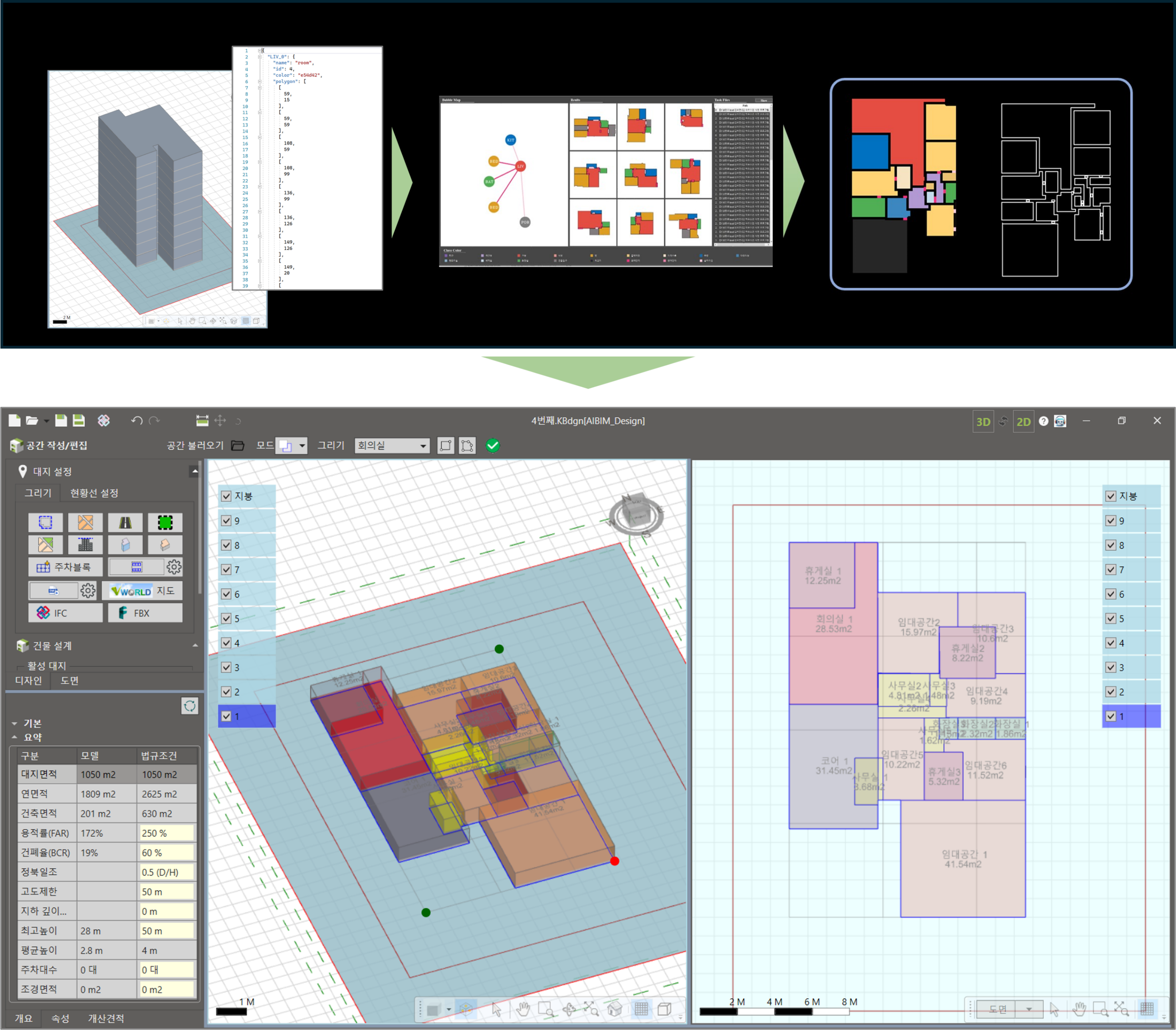 AIBIM Design은 대지의 조건을 고려하여 건축물 기획에 필요한 다양한 설계 활동을 지원하는 소프트웨어 도구입니다.